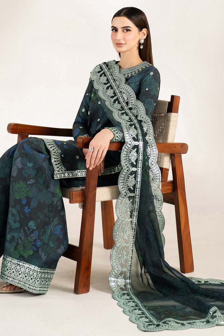 Digital Printed Embroidered Raw Silk Back & Sleeves (1.60 Yards)