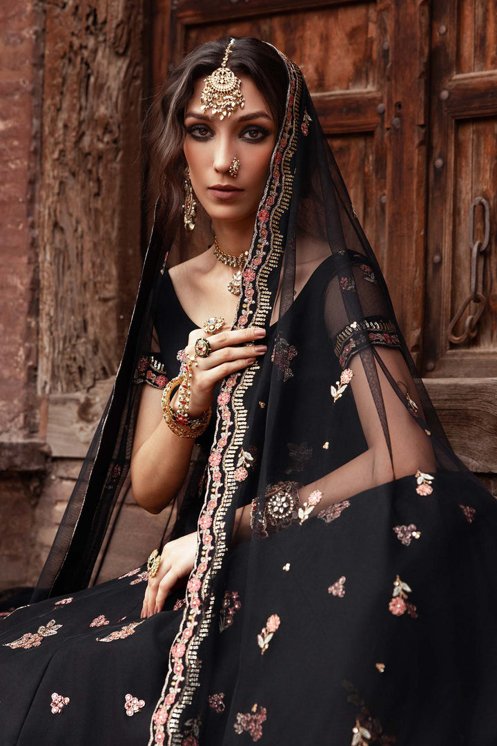 Dupatta: Sequin & Embroidered Scalloped Border With Spray Detailing