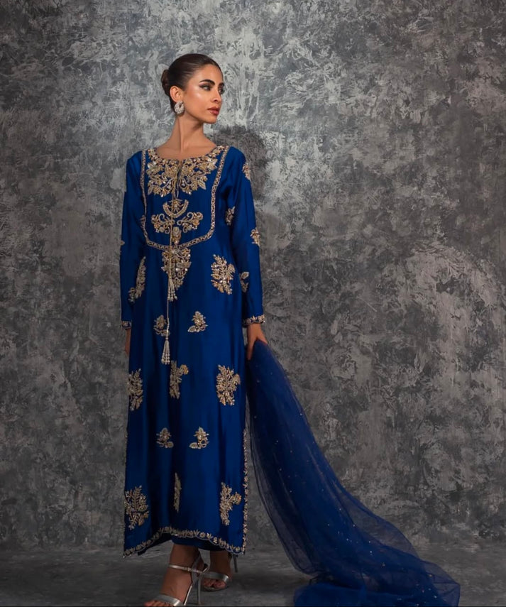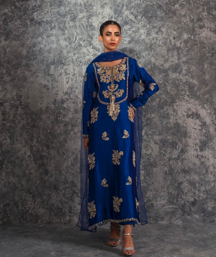 Miral by House of Sehrish Nadeem is a breathtakingly graceful ensemble that radiates sophistication. Crafted in soft, luxurious fabric, it features exquisite embellishments and intricate handwork that blend traditional charm with modern elegance. The delicate embroidery and refined details make it an ideal choice for weddings, formal events, or festive celebrations. Paired with a beautifully adorned dupatta and tailored bottoms, Miral is the epitome of timeless beauty and class.