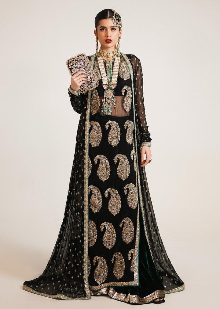 To enhance the fusion touch of the ensemble, it is complemented by a Zainab Salman signature ruffle jacket, which adds a dramatic and contemporary twist to the traditional heavily embroidered attire. For a traditional finish, this exquisite piece can be paired with a pure net dupatta, further elevating its elegance.