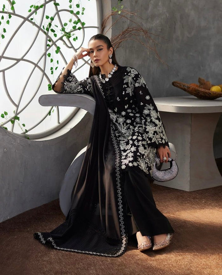 Embroidered Front&Back Border organza Embroidered Sleeves Border organza
