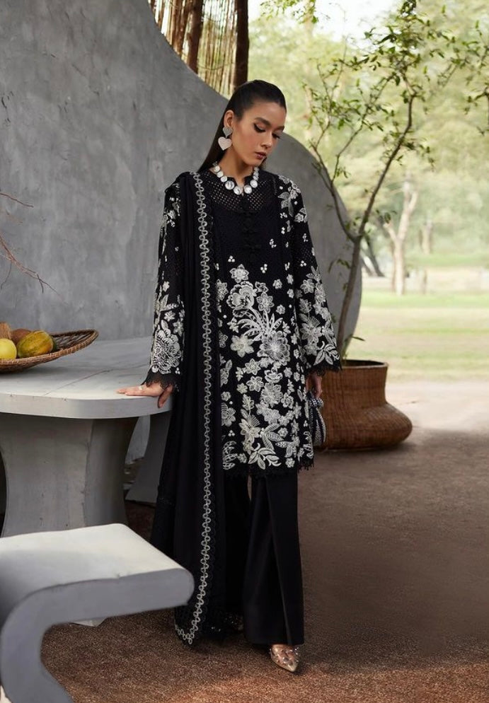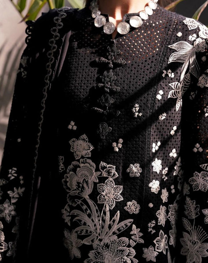 Dyed Lawn Back Embroidered Lawn Sleeves