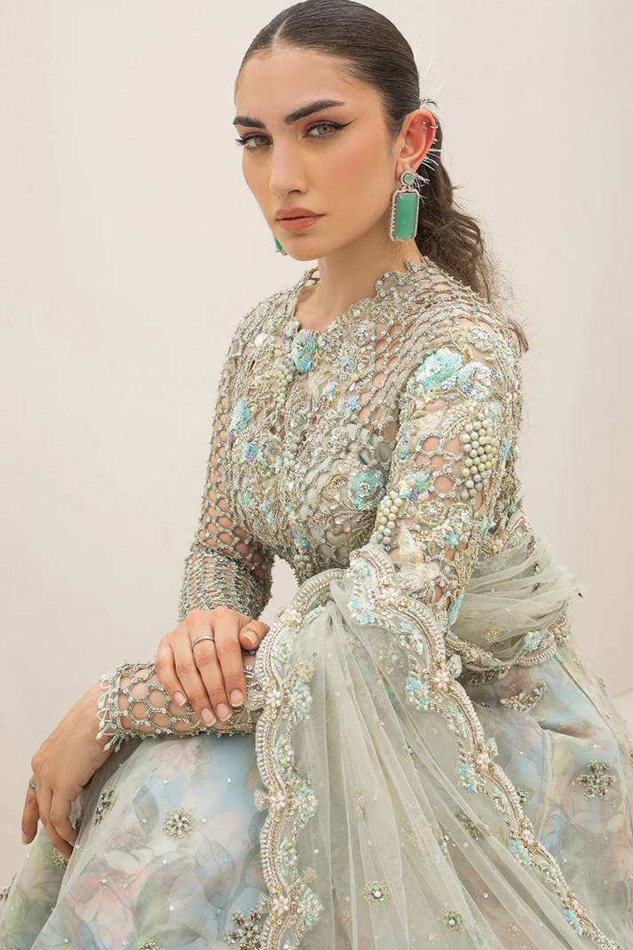 Indulge in the elegance and grace of Qalamkar's Wedding Festive Net Embroidered Unstitched Collection C-01 ZERLIN. Created with utmost care and intricate designs, this collection combines traditional craftsmanship with modern style. Perfect for any celebratory occasion, own a piece of luxury with Qalamkar.